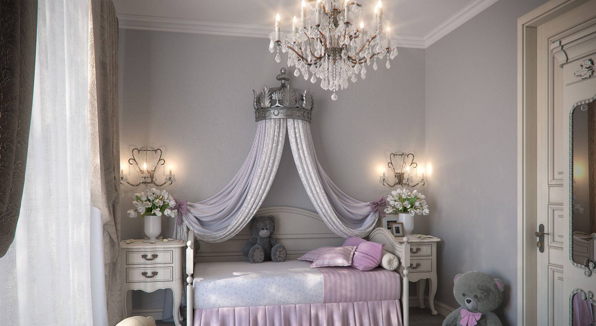 Шебби-шик. Светлые оттенки серого на стенах, старинная мебель, винтажный текстиль в пастельных тонах прекрасно сочетаются и создают неповторимое очарование в детской в стиле шебби-шик.
