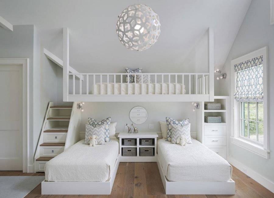 - Функциональная мебель, двухъярусная кровать в комнате для двоих детей позволяет существенно сэкономить место;