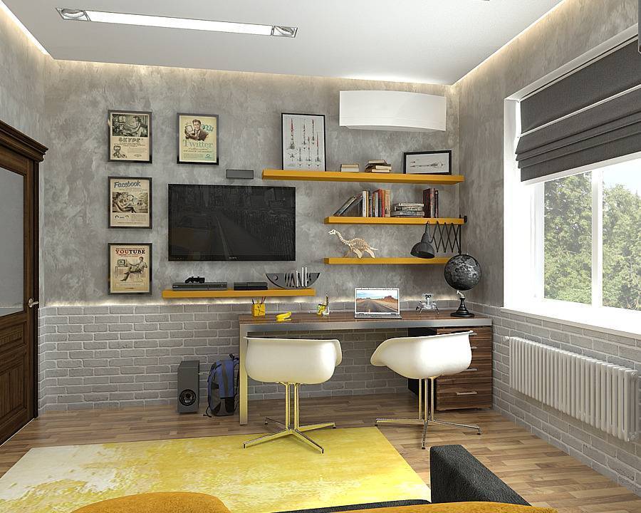 В комнате молодого человека должно быть только все самое необходимое: рационально организованное рабочее место (возможно, не только стол, но и небольшой верстак или место для занятий техническими вопросами), кровать, шкаф для одежды и комбинация книжного шкафа с полками для всего самого красивого и необходимого.
