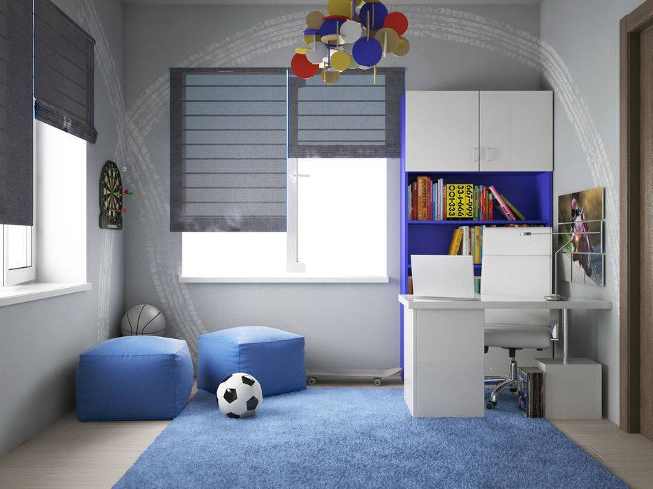Например, юный футболист однозначно будет рад проводить всё своё свободное время в комнате, выкрашенной в цвета флага любимой футбольной команды. Если же такой пока нет, можно ограничиться бело-чёрной гаммой, разбавленной травяным и тёмно-синим колером.