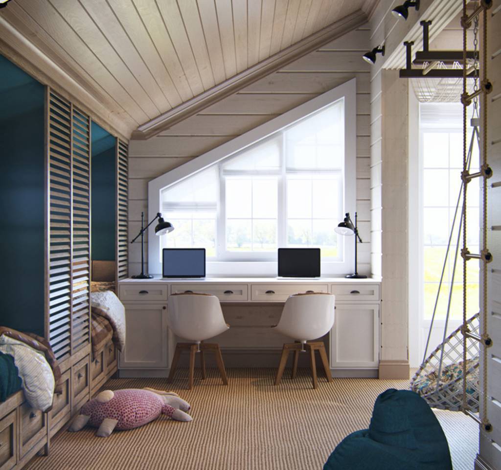 Главное, обратить внимание на расположение письменных столов под кроватью. Рабочее место должно быть доступно для дневного освещения