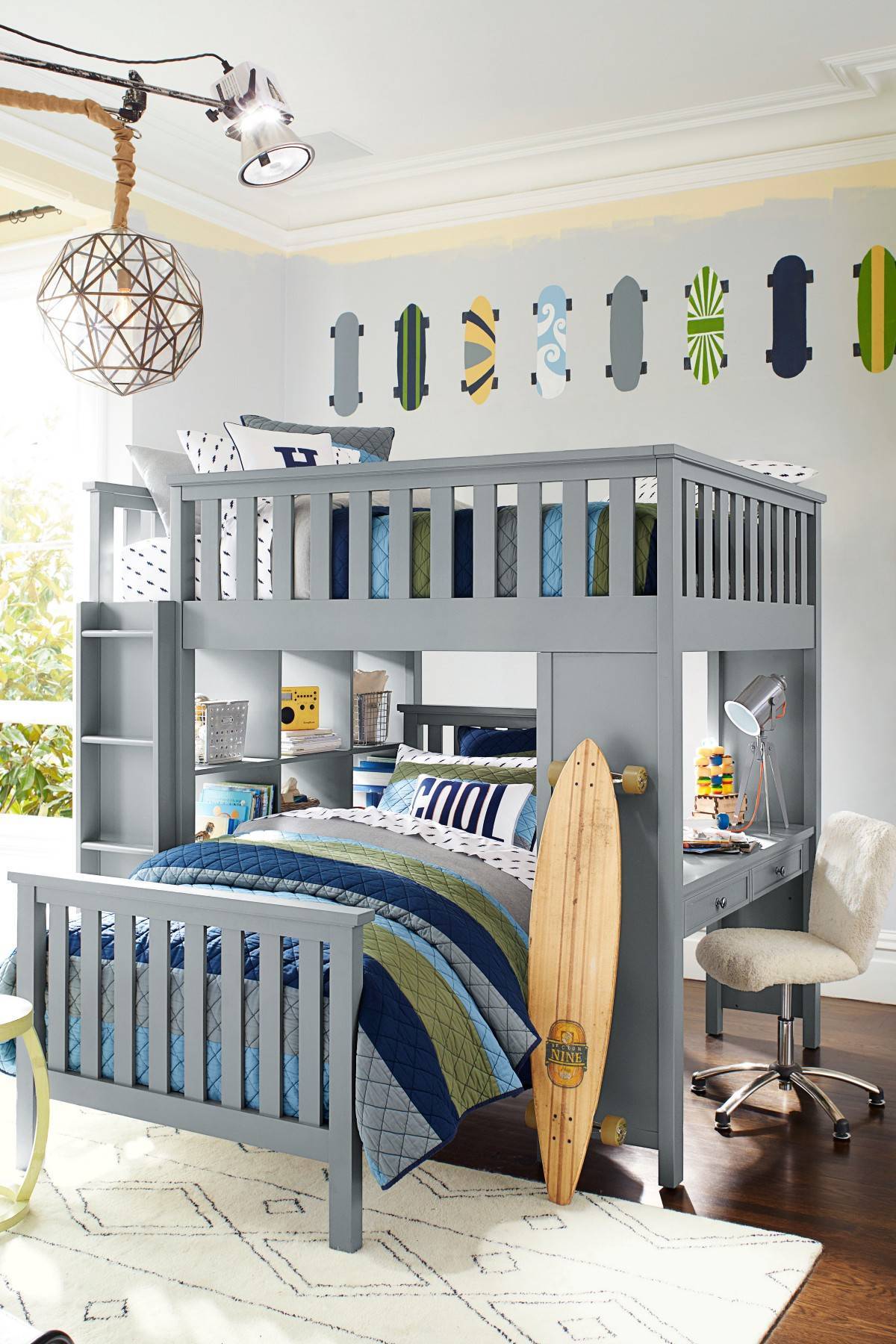 Планируя дизайн комнаты для юных жильцов, стоит обратить внимание на модульные системы мебели и модели-трансформеры с регулировкой высоты и длины конструкции. В первом случае будет возможность докомплектовать детский комплекс по необходимости