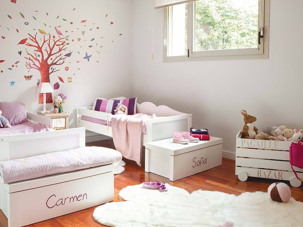 2.Зонирование детской комнаты для двоих девочек или разнополых совместно проживающих детей. Двое детей прекрасно смогут дружно жить в одной комнате, если у каждого будет свое красиво оформленное место для сна, учебы и уголок уединения. В комнате для двоих девочек, например, можно соединить спальное место в одно, если поставить двухъярусную кровать.