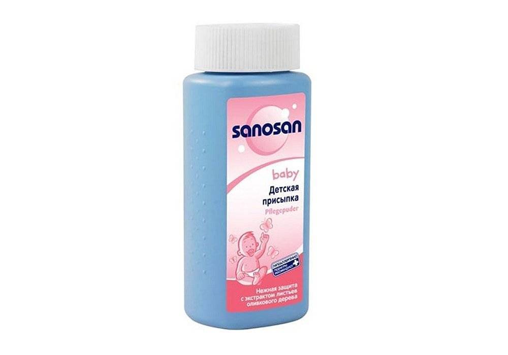 - Sanosan (Саносан) – еще один производитель из Германии. Состав этого продукта богат на компоненты, все они благоприятны для кожи младенцев. Пудра «Саносан» содержит: минеральный тальк, масло авокадо и оливковое масло, аллантоин, оксид цинка и отдушку. Наличие в составе масел помогает коже не пересыхать, оставаться достаточно увлажненной. Наличие натуральных компонентов и отсутствие аллергенов позволяют использовать присыпку даже в случае дерматита или незначительных повреждений. Такой компонент, как аллантоин, способствует регенерации и заживлению кожных покровов.