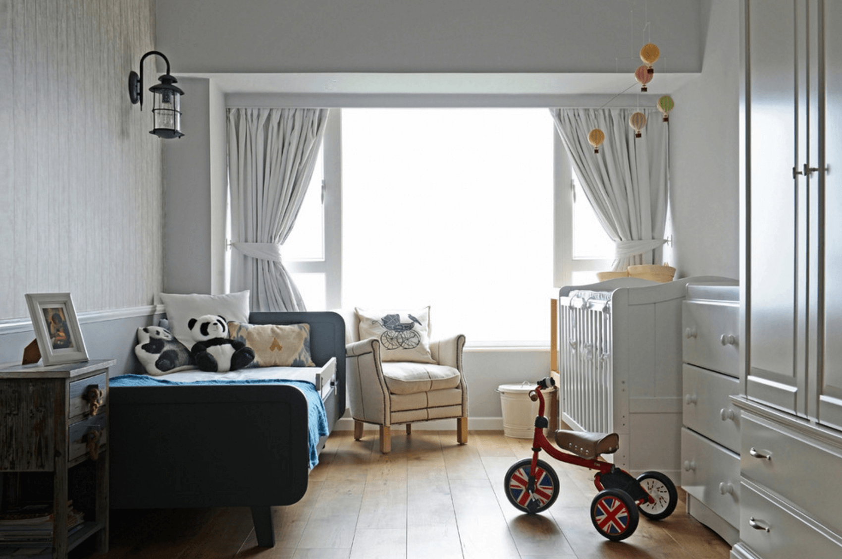 При разном оформлении, оставь схожие элементы. Например, светильники в детской и взрослой зонах могут быть разной конфигурации, но из одного материала. А текстиль подушек и портьер перекликается между собой.