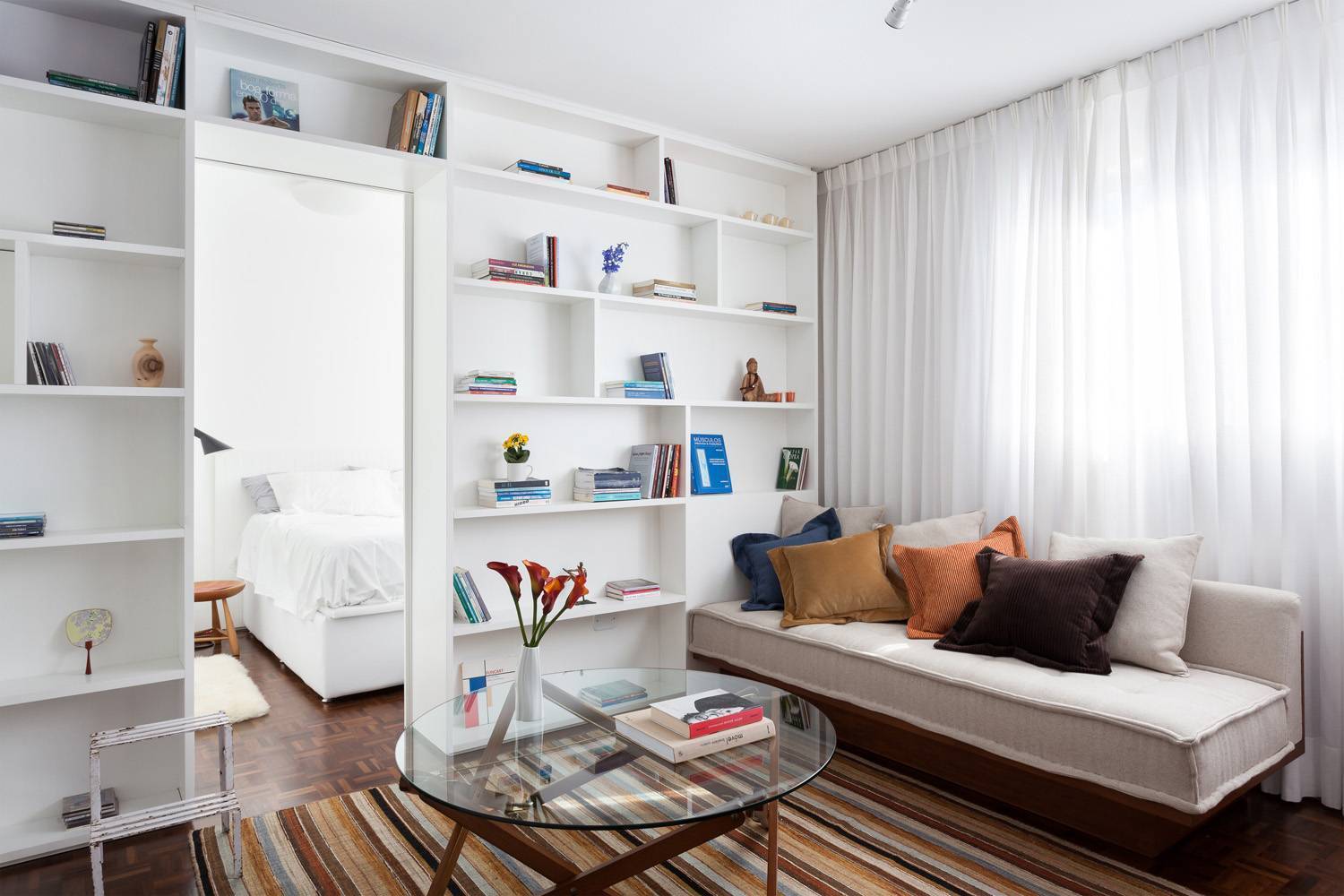 Хотя в квартирах уделяется много внимания открытому пространству, стоит иметь отдельный спальный уголок — тот, который служит ночному отдыху и где нет беспорядка. Это решение не только практично, но и эстетично, так как вам не нужно беспокоиться о неубранной кровати, когда собираете друзей дома. Даже в малогабаритных апартаментах 30-40 м² вы можете отделить небольшое пространство, где можно обустроить спальню. Зона отдыха не должна быть большой, так как достаточно разместить удобную кровать и тумбочку.