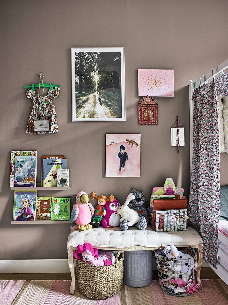 Если нет возможности выделить ребенку комнату, нужно постараться обустроить для него свой уютный уголок с компактными полочками, столом и другой уместной мебелью. Стену в детской зоне пусть украшает изображение с любимыми персонажами. А элементом, обозначающим пространство малыша, может стать раздвижная перегородка.