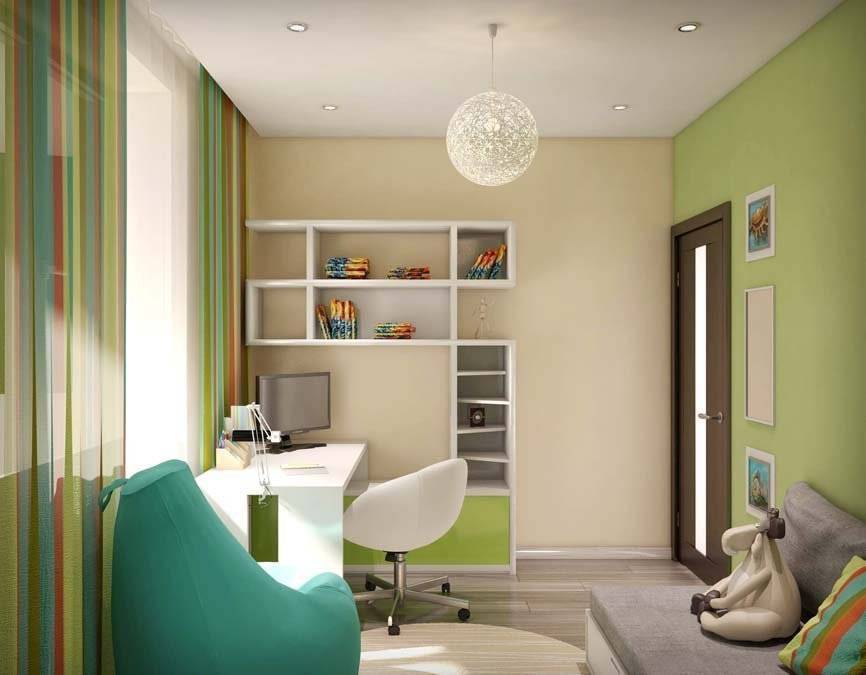 При выборе светильников родители должны учитывать специфику расположения комнатки. Например, для спален с окнами, выходящими на южную сторону, нужно установить подсветку, которая в послеобеденное время поможет сделать помещение светлым. В качестве потолочного осветителя подойдет комплект точечных светильников или одна большая люстра с множеством лампочек. Над рабочей зоной стола можно повестить настенные бра или же установить настольный светильник. Возле спального ложа следует расположить подсветку, ночник или неяркий настенный спот. Возле дивана, кресла, предназначенного для чтения, допускается монтаж настенной модели, установка небольшого торшера. Что касается цветовой гаммы, то лучше остановить выбор на 2-3 основных колерах. В декоре и мебели могут присутствовать их оттенки. Оптимальными для малышей станут кремовые, бежевые и другие пастельные тона. Для старших деток можно выбирать более насыщенные колеры: салатовой, оливковый, коралловый, бирюзовый, серый.