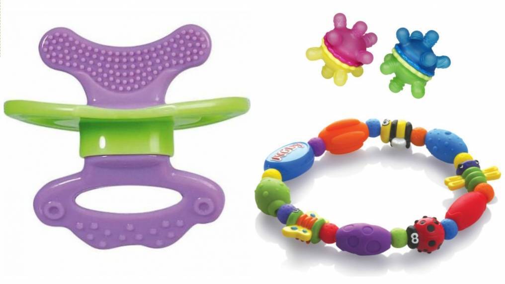 Согласно рекомендациям педиатров, для детей 5-ти месяцев наилучшими игрушками будут резиновые или силиконовые прорезыватели различной формы и размера, игрушки с поверхностью «под зеркало», большой мяч, игрушки, на основу которых нанизаны небольшие шарики, предметы.
