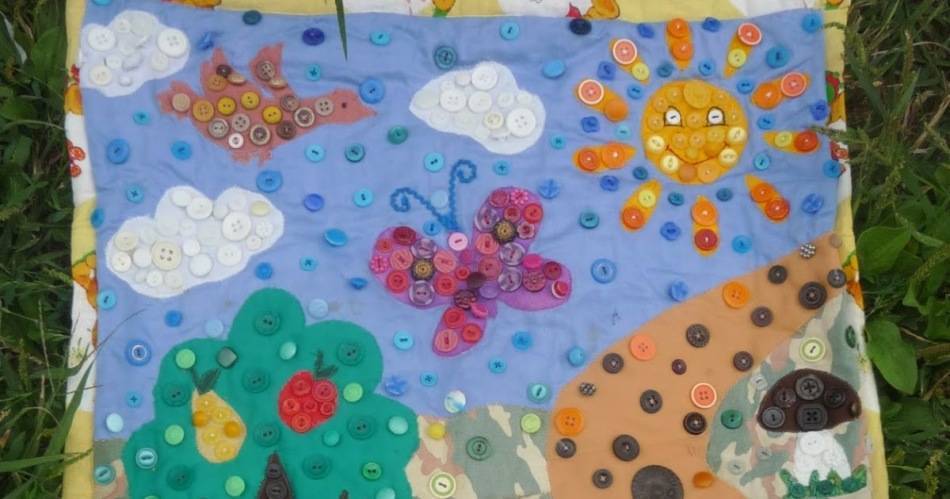- Развивайте тактильное восприятие ребенка – давайте подержать предметы с различной формой и поверхностью – гладкие и пупырчатые мячики, кубики, мягкие игрушки с различным наполнением – рисовые, шуршащие. Очень крепко пришейте к плотной ткани разные пуговицы, бусины, шнурки и давайте изучать ребенку