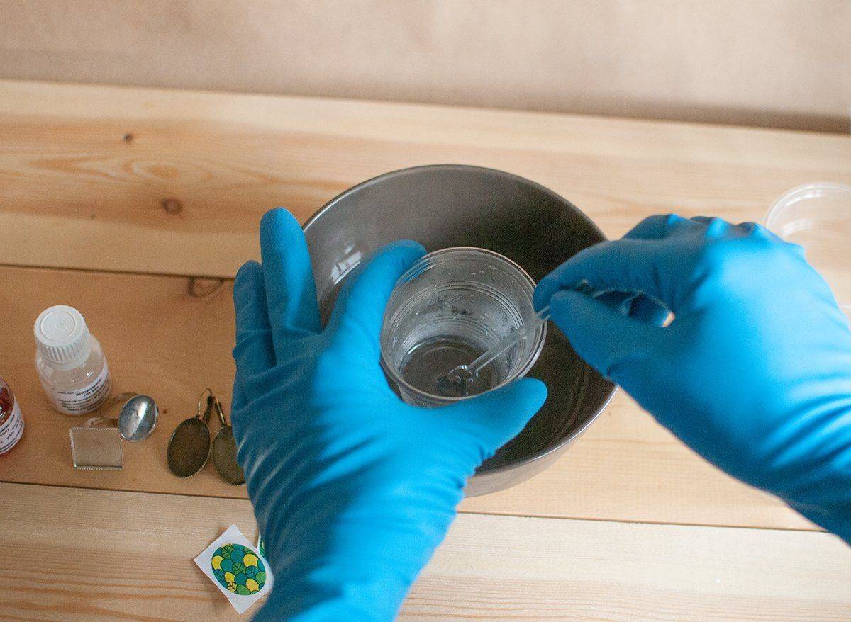 - Если эпоксидная смола попала на кожу, ее нужно быстро смыть с применением мыла.