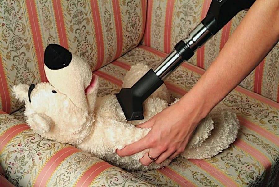 Если игрушка большого размера и не поместится в пакет или морозильную камеру, воспользуйтесь средством для чистки ковров (например, «Ваниш»). Взбейте колпачок жидкости в крепкую пену, после чего вотрите в обивку. Через полчаса пропылесосьте игрушку – активное вещество в составе пены уберет все загрязнения.