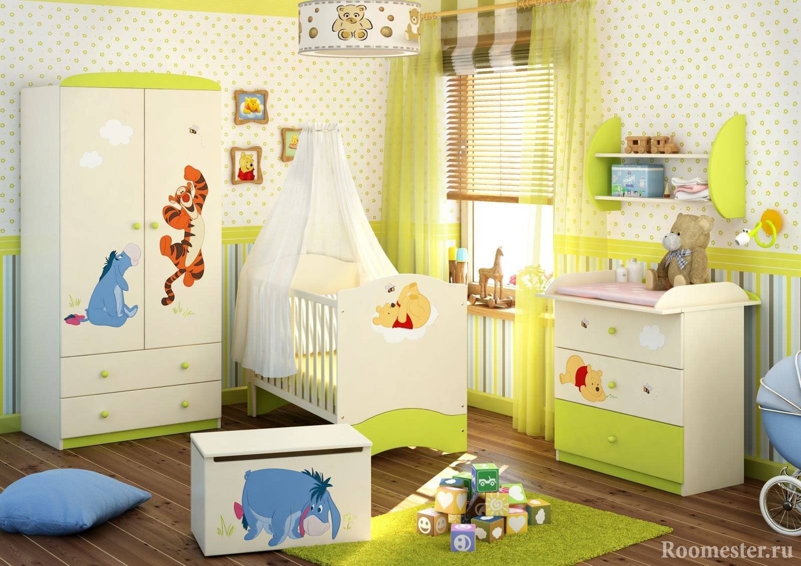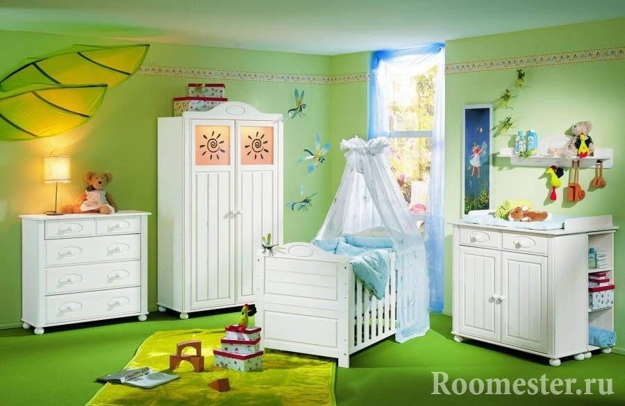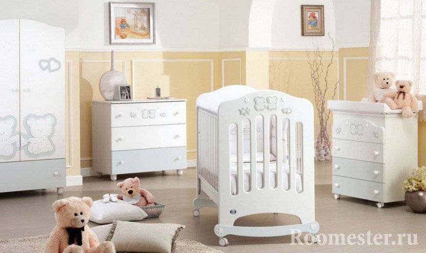 Младенцу поначалу надо минимум мебели, однако, в будущем появиться потребность в приобретении разных элементов. Рекомендуется разработать дизайн меблировки, который будет служить в течение 4-5 лета. Вначале понадобится приобрести: