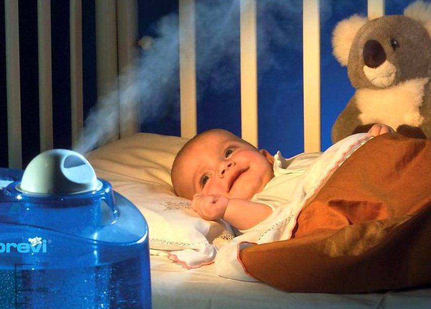 Для дыхательных путей малыша вреден как пересушенный воздух, так и чрезмерно увлажненный, оптимальная влажность воздуха в помещении составляет 50-70%. Избыток или недостаток влаги вызывает рост болезнетворных бактерий.