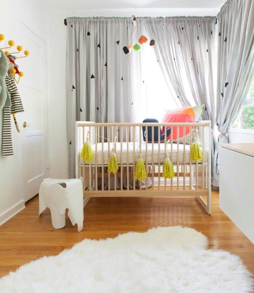- Ткани и шторы. Ткани из плотного волокна – плохо для новорожденного, поскольку они быстро накапливают пыль. Лучшим вариантом текстиля послужит тюль. Он не испортит общий вид интерьера. А сверху можно повесить шторы из легких натуральных тканей, чтобы они немного защищали от солнца, придавали помещению уют.