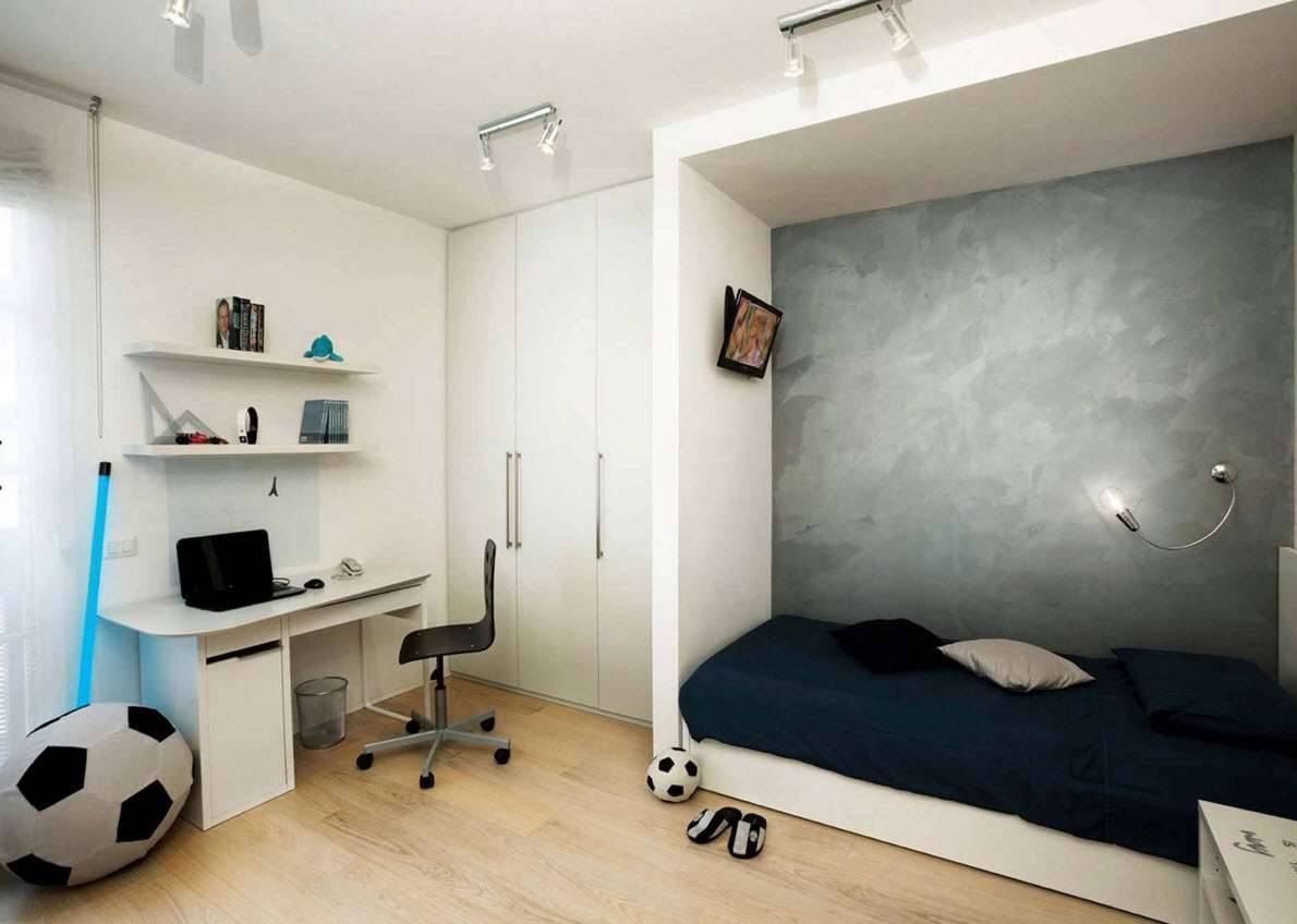 Популярная идея дизайна небольших комнат для мальчиков спортивная тема. Она подходит почти для всех ребят, а особенно тех, кто увлекается данным направлением. Комната наполнится положительными эмоциями, поэтому в ней весело и комфортно.