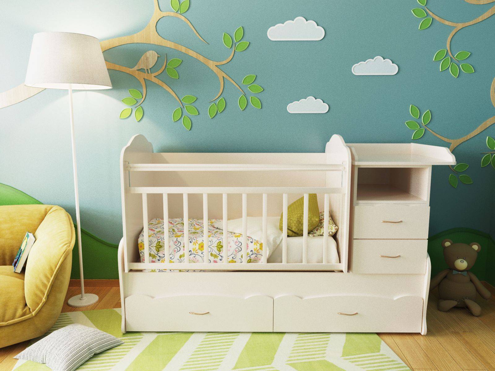 - как кроватка «впишется» в интерьер комнаты;