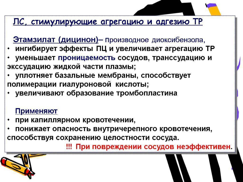 Гемостатическая активность этамзилата определяет терапевтический эффект лекарства. Данное вещество:
