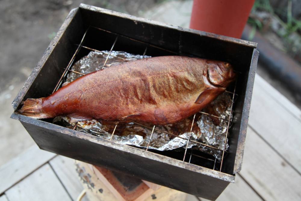 - Помещают на дно коптильни опилки фруктовых пород деревьев или ольхи черной слоем 1,5—2 см.