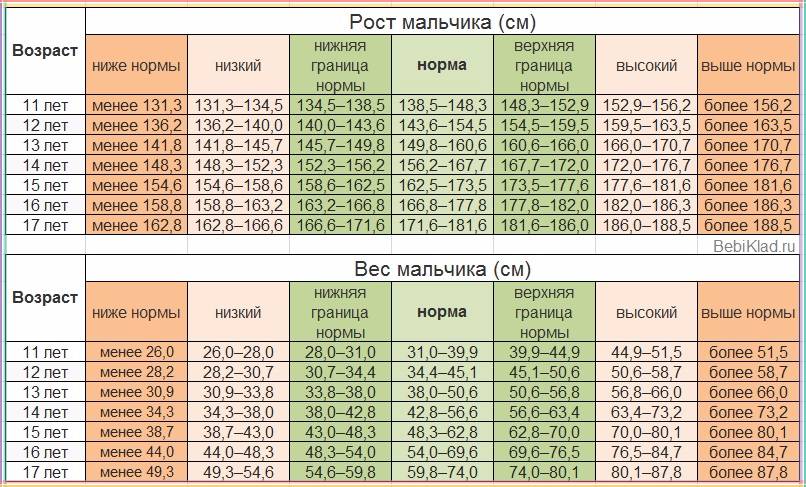 Таблица роста и веса для мальчиков подростков