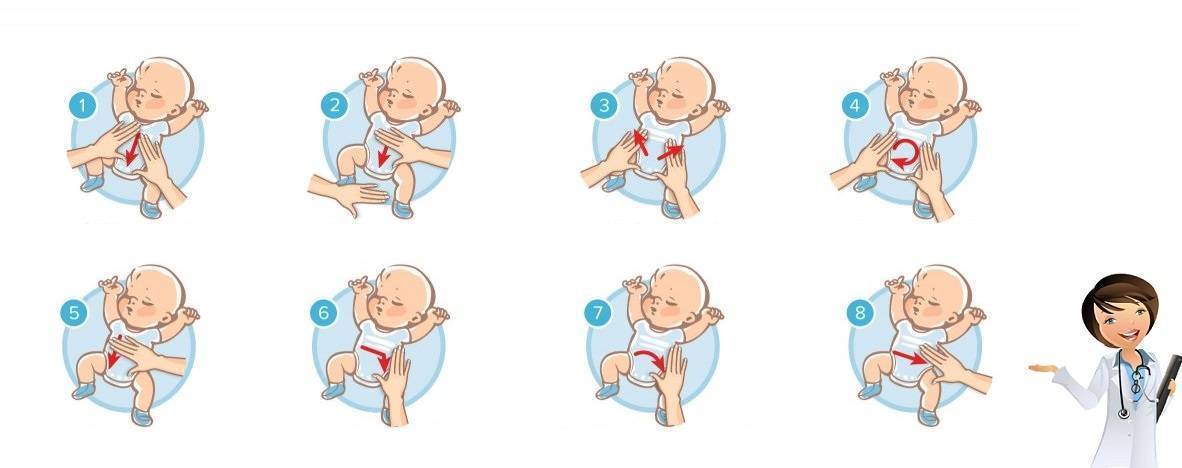 - Погладить животик крохи круговыми движениями по часовой стрелке.