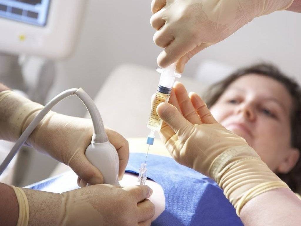 Беременным женщинам высоких групп риска может быть назначена консультация генетика с возможным проведением биопсии хориона, амнио-, кордо-, плацентоцентеза с определением отклонений в развитии будущего ребёнка. Самое доступное из всех этих исследований — амниоцентез. При нем путём микропрокола амниотической оболочки получают порцию околоплодных вод, которая содержит клетки эмбриона. Именно их исследуют на наличие или отсутствие генетических повреждений.