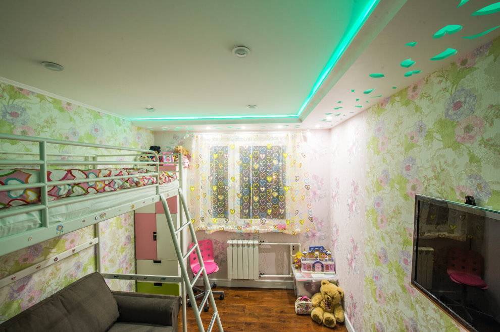Светодиодная RGB-подсветка подсветка помогает скорректировать пространство детской комнаты, расширить пространство или увеличить высоту потолка