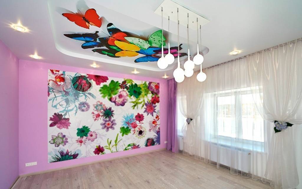 Оно предполагает минимальный опуск, и поэтому отлично подходит для жилья с невысокими потолками. Свободно комбинируя фактуры и расцветки на одном полотне можно разделить детскую на зоны, визуально подкорректировать габариты, поддержать цветовое решение комнаты.