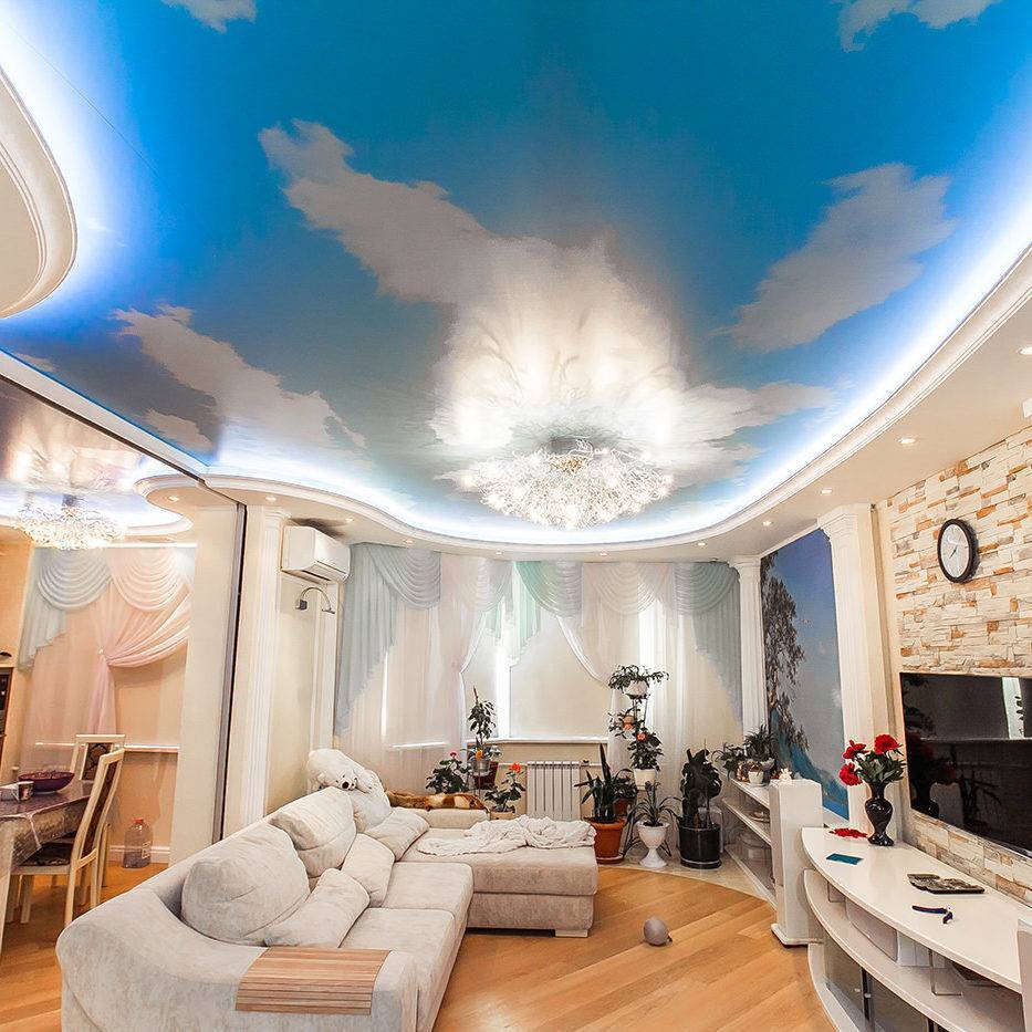 В своих отзывах клиенты часто отмечают, что натяжное полотно потолка с фотопечатью выходит очень плотным, и повредить его гораздо сложнее, чем тонкую пленку. А еще многие сетуют, что напрасно долго не решались заказывать фотопечать на глянце. Такое смелое решение натяжного потолка выглядит не хуже привычного матового. Хотя все же выигрышнее фотопечать смотрится на сатиновом натяжном потолке.