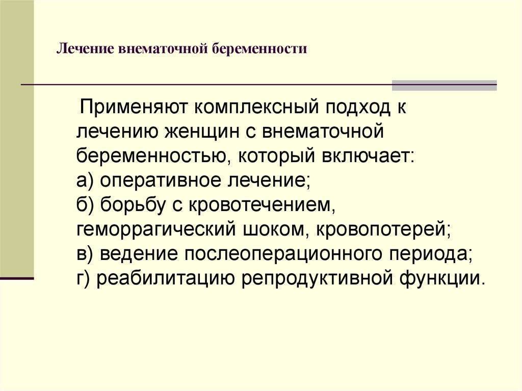 При диагностировании внематочной беременности в срочном порядке выполняется операция. При ее проведении могут извлечь плодное яйцо без рассечения трубы, удалить часть или всю маточную трубу. Объем оперативного вмешательства зависит от срока беременности и степени повреждения стенок органов. Чем раньше женщина обратится за медицинской помощью, тем более вероятен благоприятный исход лечения.
