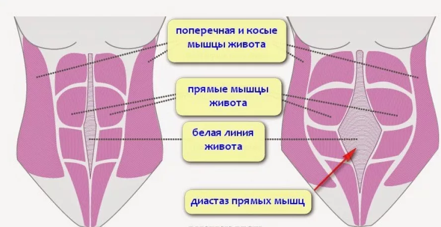 - чрезмерное напряжение мышц живота, вследствие которого они расходятся;