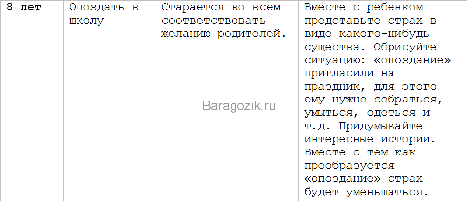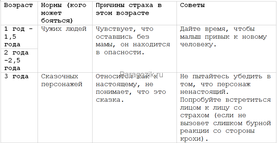 Таблица: нормы боязни ребенка других детей, чужих людей и проч., причины страхов