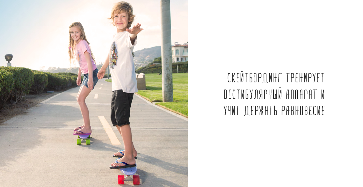 Работа над координацией движений и тренировка вестибулярного аппарата. Как все мы знаем, катание на скейтборде требует большой работы над поддержанием равновесия. Такие тренировки пойдут на пользу малышу, помогая ему набирать силу и выносливость.