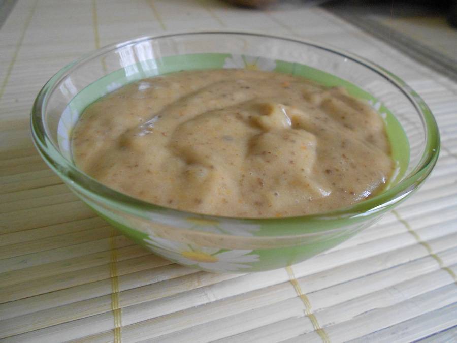 100 гр хлеба размочить в ½ стакане молока и смешать с желтком. 100 гр печени перемолоть и добавить к хлебу. Все перетереть через сито и залив 1 стаканом бульона или воды и варить 10 минут. Посолить по вкусу и заправить 2 ч. ложками сливочного масла.